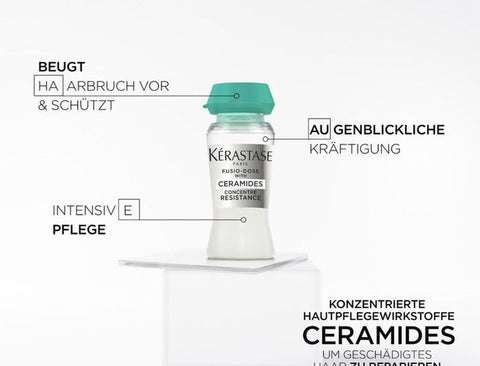 Kerastase Fusio-Dose Concentré Résistance ist eine reparierende Pflege für geschädigtes Haar. Mit Ceramiden kräftigt es die Haarfasern, schützt vor Haarbruch und stärkt die Widerstandskraft für gesünderes Haar.